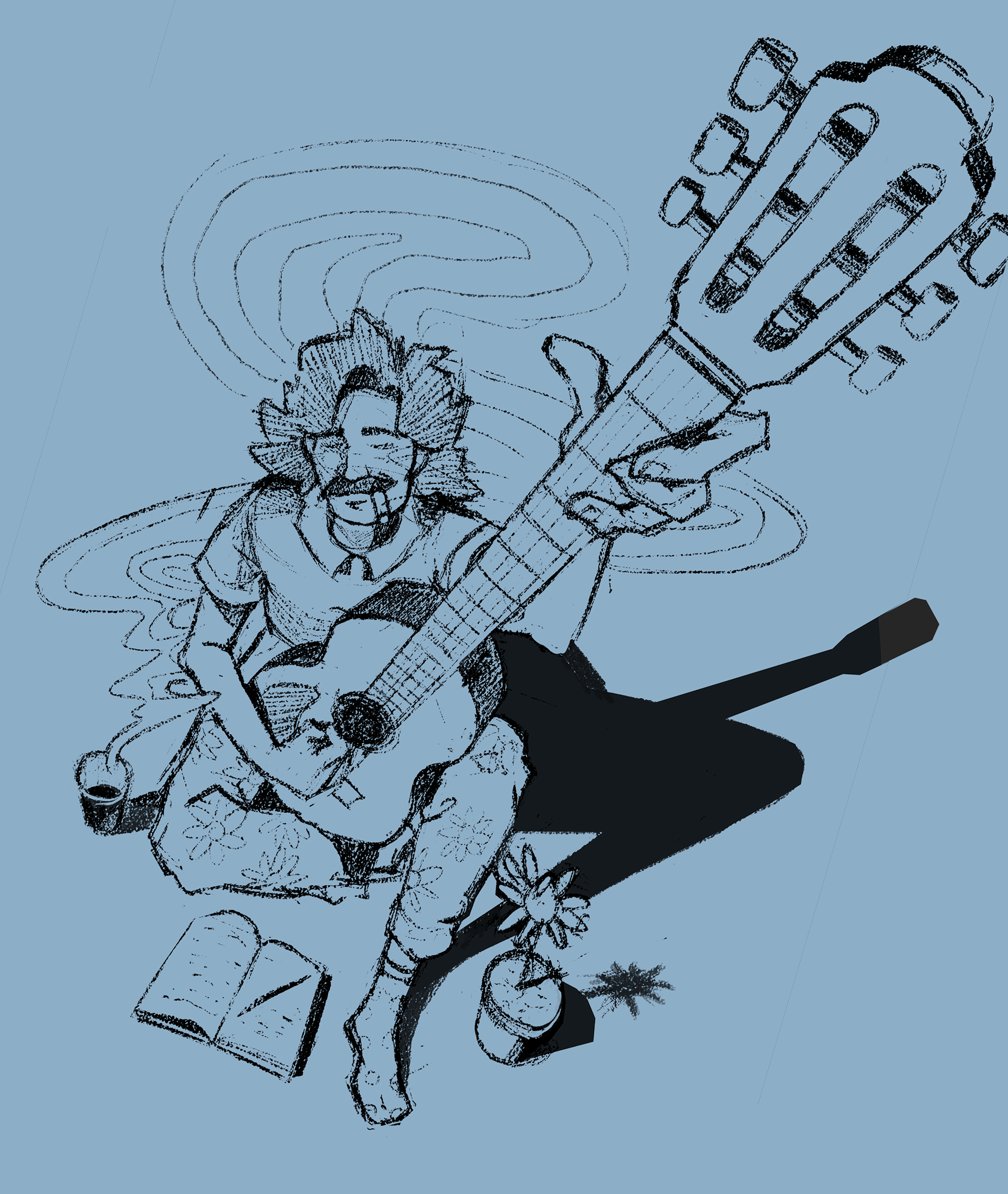 I produced this illustration after days listening to Belchior, as a result of which I felt the desire to represent him through art in order to thank him for all the inspiration provided to me in his songs.